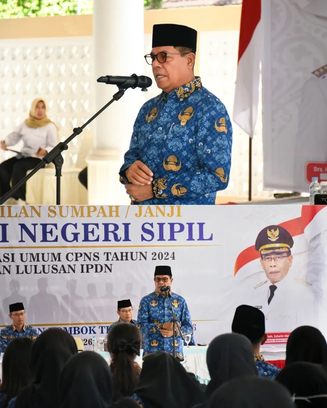 Selong–Sebanyak 94 Pegawai Negeri Sipil (PNS) lingkungan Pemerintah Kabupaten Lombok Timur yang berasal dari formasi CPNS tahun 2024 dan lulusan IPDN angkatan XXIX, XXX, dan XXXI resmi dilantik oleh Bupati Lombok Timur H. Haerul Warisin. Bupati melantik para PNS tersebut dalam upacara pengambilan sumpah/ janji jabatan yang berlangsung di Pendopo Bupati Rabu, (01/04).