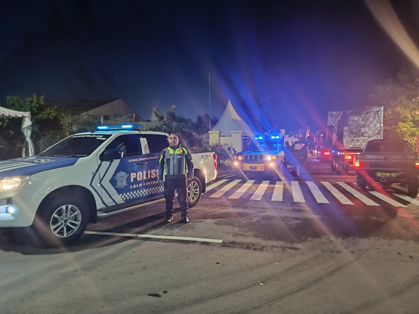 Langkah tersebut dilakukan untuk memastikan seluruh perlengkapan logistik event tiba tepat waktu, aman, dan tanpa hambatan, sekaligus menjaga keamanan, keselamatan, ketertiban, dan kelancaran lalu lintas (kamseltibcarlantas) di jalur yang dilalui.