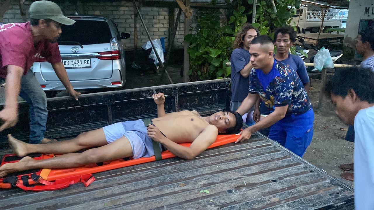 Tanjung halolombok—Mengguna Kapal Polisi XXI-2015 Di polairud Polda NTB bersama masyarakat setempat melaksanakan evakuasi terhadap seorang warga atas nama Buldani (35), asal Dusun Teluk Kombal, yang mengalami kecelakaan terpeleset di wilayah Gili Trawangan akibat kondisi jalan yang licin. Akibat kejadian tersebut, korban mengalami patah tulang pada bagian kaki.